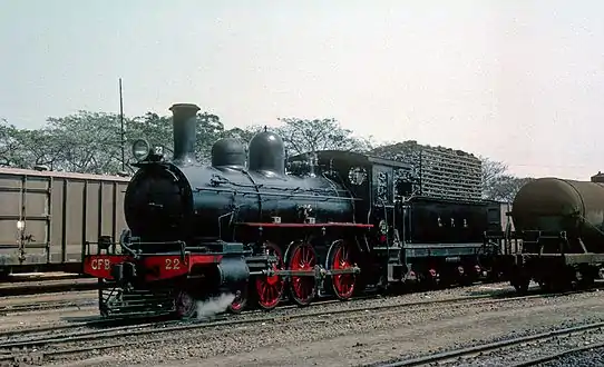 In 1907, five 6th Class locomotives of the Cape Government Railways were sold to the 3 ft 6 in (1,067 mm) Benguela Railway (CFB). These included one of the Dübs-built locomotives of 1897 and two each of the Neilson and Company and Neilson, Reid and Company-built locomotives of 1897 and 1898.[3] (Also see South Africa - Cape gauge)