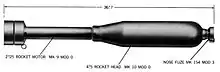 Developed during 1942 by the California Institute of Technology (Caltech), under the direction of Charles Christian Lauritsen,[2] in response to a requirement by the United States Navy for a rocket capable of being launched from landing craft to provide fire support during amphibious landings, the 4.5-Inch BBR was an improved version of the Mousetrap anti-submarine rocket system, using the Mousetrap's Mk 3 rocket motor mated to a 20-pound (9.1 kg) general purpose aerial bomb.[3] An impact fuse was mounted in the nose of the rocket, with an annular fin assembly providing stability.[4] A modified, larger version of the Beach Barrage Rocket, using the Mk 9 rocket motor, was also produced, being introduced into service in late 1944.[3][4]