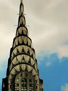 An elevated railroad line, running above East 42nd Street from Third Avenue to the Grand Central station, was closed in 1923,[10] leading to the development of such structures as the Chanin Building and 110 East 42nd Street west of Lexington Avenue. The street east of Lexington Avenue continued to be made up of mostly low-rise buildings; these blocks were adjacent to the Second Avenue and Third Avenue elevated lines, and accordingly, initially considered unattractive for major development.[11] By the 1920s, The New York Times reported that several high-rise developments were "radically changing the old-time conditions" along East 42nd Street,[12] including the Chanin, Lincoln, Chrysler, and Daily News Buildings, as well as Tudor City.[13]