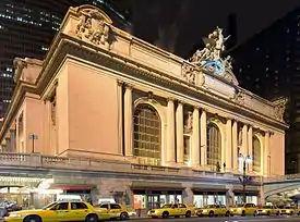 Cornelius Vanderbilt began the construction of Grand Central Depot in 1869 on 42nd Street at Fourth Avenue as the terminal for his Central, Hudson, Harlem and New Haven commuter rail lines, because city regulations required that trains be pulled by horse below 42nd Street.[6] The Depot, which opened in 1871, was replaced by Grand Central Terminal in 1913.[7]