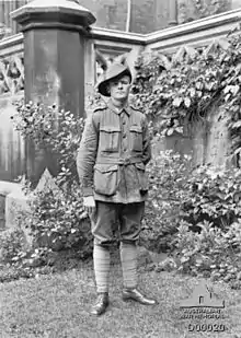 The 50th Battalion was originally raised in Egypt on 26 February 1916, as part of the reorganisation and expansion of the AIF following the Gallipoli campaign and prior to the transfer of the Australian infantry formations to the Western Front in Europe.[2] This expansion was achieved by transferring cadres of experienced personnel predominately from the 1st Division to the newly formed battalions and combining them with recently recruited personnel who had been dispatched as reinforcements from Australia.[3] With an authorised strength of just over 1,000,[1] the unit's first intake of personnel were drawn from men originating from South Australia, many of whom had already served with the 10th Battalion. Under the command of Lieutenant Colonel Frederick Hurcombe, the battalion became part of the 13th Brigade attached to the 4th Australian Division.[4]