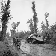 The 56th Brigade took part in the D-Day landings on 6 June 1944, as part of the Allied invasion of Normandy, where it formed the right flank of the 50th (Northumbrian) Infantry Division on Gold Beach. It remained attached to the 50th Division until 10 June, after which it was attached to the 7th Armoured Division until 12 June, then reverting to the 50th Division and came under command of the 59th (Staffordshire) Infantry Division in early August 1944. On 20 August the brigade was permanently attached to the 49th (West Riding) Infantry Division, then commanded by Major General Evelyn Barker, a decorated veteran of the Great War. Serving alongside the 56th Brigade in the division were the 146th and 147th Infantry Brigades, along with supporting divisional units. The brigade replaced the 70th Brigade, which was disbanded due to heavy losses.