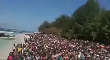 Tourists reported that there was no coordination among the authorities during the evacuation process in Gili Islands and no information was given in English.[134] They also reported that authorities and rescuers forced tourists to pay for the rescue boats, which led to outrage.[135] BNPB officials confirmed the report, saying that some parties demanded Rp 2 million (US$140) to transport stranded tourists to the airport.[136] Reports also stated that the rescuers chose the highest bidders to be evacuated first from the island, and that locals were evacuated first, leaving foreigners for later.[134][137][138] By afternoon on 7 August, 4,636 local and foreign tourists had been evacuated to the ports of Bangsal, Lembar and Benoa.[139]