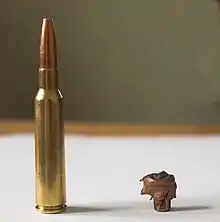 In 1891, the Swedish-Norwegian Rifle Commission started its work. After extensive ballistic tests where different calibers were tested (8 mm, 7.5 mm, 7 mm, 6.5 mm etc.), the optimal caliber was determined to be 6.5 mm (0.256 in). Following this decision, a joint Norwegian-Swedish commission was established in December 1893.[6] This commission worked through a series of meetings to decide on the different measurements for the cartridge case. The Norwegians early presented a 6.5 mm rimless cartridge design, but the Swedes wanted a rimmed cartridge. As a compromise, the Norwegians produced an experimental semi-rimmed cartridge which was very similar to what would become the final version. The book Cartridge Cases refers to this cartridge as 6,5mm Norwegian Experimantal.[13] This cartridge had a 6.7 mm bullet, a 55 mm long case, but differed from what became the final version by having a slightly less tapered shoulder, a slightly smaller diameter base (11.75 mm) as well as being semi-rimmed (12.6 mm). However, after a firearm demonstration by Mauser, the Swedes changed their mind and wanted a rimless design. After further discussions, a rimless cartridge case of 55 mm length was approved, and each possible measurement (diameter at base, diameter at neck, angle of case, angle of shoulder etc.) was decided upon.[6] The corresponding dimensions of the cartridge chamber to be used in a future service rifle was also determined.[6] At the time of its development the 6.5×55mm was a high-performance smokeless-powder cartridge. The design of the joint Norwegian-Swedish commission was subsequently adopted by the Norwegian and Swedish governments, and entered service in the Norwegian and Swedish militaries. The cartridge was also adopted by the Danish, Norwegian and Swedish civilian shooting associations DDS, DFS and FSR.