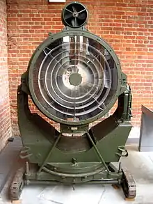 In November 1940 AA Command changed its S/L layouts to clusters of three lights to improve illumination, but this meant that the clusters had to be spaced 10,400 yards (9,500 m) apart. The cluster system was an attempt to improve the chances of picking up enemy bombers and keeping them illuminated for engagement by AA guns or Royal Air Force (RAF) Night fighters. Eventually, one light in each cluster was to be equipped with Searchlight Control radar (SLC) and act as 'master light', but the radar equipment was still in short supply.[11][12]