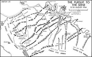 ![]() Map of the First Canadian Army's advance, August 1944. | |||||||||