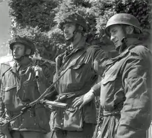 On 6 June 1944, the 6th Airborne Division landed in Normandy. Their mission was to secure the left flank of the invasion zone, by occupying and dominating the high ground between the River Orne and the River Dives.[2][3] Despite the parachute troops being widely scattered, they managed to complete all of their objectives. After six days of counter-attacks by German armour and infantry, the division's position was secure by the end of the Battle of Breville on 12 June. Thereafter, they suffered only artillery bombardments.[4]