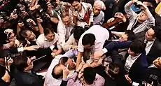 - 11 May 2019: A clash broke out as the pro-democracy and pro-Beijing camps called separate meetings of the Bills Committee of the controversial Fugitive Offenders and Mutual Legal Assistance in Criminal Matters Legislation (Amendment) Bill 2019 at the same room. A number of legislators fell to the ground as they pushed and shoved each other along the packed hallway. Gary Fan fell to the ground after standing on a table, and appearing to have fainted before he was sent to hospital.[13]