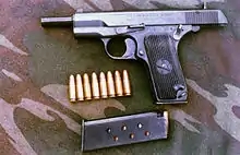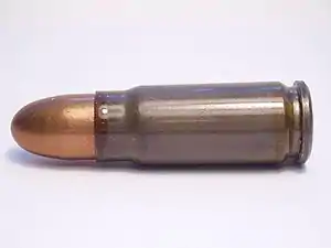 The 7.62×25mm Tokarev cartridge (designated as the 7.62 × 25 Tokarev by the C.I.P.[5]) is a Russian rimless bottlenecked pistol cartridge widely used in former Soviet states and in China, among other countries. The cartridge has since been replaced in most capacities by the 9×18mm Makarov in Russian service.[6]