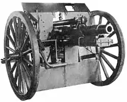 The 75 mm gun M1916 was a US Army field artillery piece used during and after World War I. It was used as an anti-aircraft gun as well as a field piece. It originated as the 3-inch gun M1913, which was soon modified to the 3-inch gun M1916, which was later altered to the subject weapon.[2]