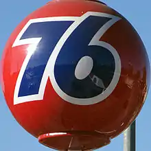 76 (formerly Union 76) is a chain of gas stations located within the United States. The 76 brand is currently owned by Phillips 66 Company.[1] Union Oil Company of California, dba Unocal, the original owner and creator of the 76 brand, merged with Chevron Corporation in 2005.