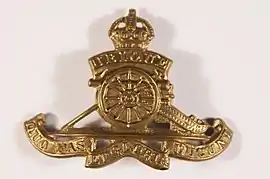 86th Field Brigade had retained the Hertfordshire Yeomanry badge of the Hart (deer) as a collar badge worn in addition to the RA's 'gun' cap badge, and later it replaced the gun badge on side caps and berets; this was continued by the new unit even though 343 Field Bty was strictly descended from 4th East Anglian Brigade, Royal Field Artillery, and not the Yeomanry.[2][5][9]