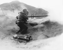 The 7th Regiment sailed from San Francisco, California, on 20 August 1950,[9] and landed in Japan on 16 September 1950. There its strength was augmented by hundreds of KATUSA (Korean Augmentation to the U.S. Army—Korean conscripts detailed to serve with U.S. units). Two months later, the regiment embarked again and landed at Wonsan on Korea's eastern coast on 21 November 1950. It joined with the 15th and 65th Infantry Regiments and moved to the northwest of the Hungnam area where it covered vis-à-vis Task Force Dog[10] from Chinhung-ni, the Army's X Corps forward elements (1st Marine Division and 7th Infantry Division Regimental Combat Team RCT 31 (AKA Task Force Faith)) withdrawal from the Chosin Reservoir and, joining the perimeter defense for the Hungnam Evacuation during the Chinese People's Volunteer Army (PVA) Second Phase Campaign.