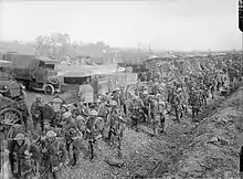 ![]() Men of the 4th Battalion, Worcestershire Regiment gather near Army Service Corps (ASC) lorries after returning from the trenches near Albert, France, September 1916. | |