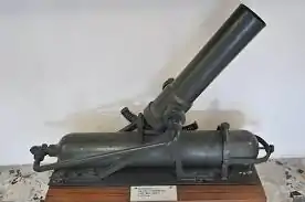 The 8 cm Luftminenwerfer M 15 (Pneumatic trench mortar) was a light mortar used by Austria-Hungary in World War I. It was designed by the 58th Infantry Division and the first twenty were built in the division's workshops. Later production was contracted out to Vereinigte Elektrische Maschinen A. G. in Budapest. It used the breakable screw method to retain the bomb in place until the air pressure in the chamber was strong enough to break the screw. Grooves of different depths could be used to vary the range. It was sometimes referred to as the Roka-Halasz system.