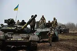 On 18 September 2014, the brigade received a number of refurbished T-64BV tanks.[13] On 5 April 2015, four soldiers of the brigade were killed when their vehicle was blown up while crossing a bridge in Shchastya. Among those killed was brigade deputy chief of staff Major Oleh Kovbasa.[14] The brigade was stationed in Shchastya as of June 2015.[15]