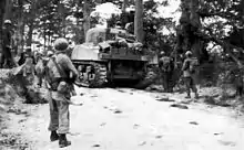 After resting in July, the Division left Okinawa for Mindoro, in the Philippines, and engaged in a training program. The Division left the Philippines, 17 January 1946, for the United States.[6]