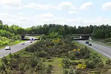 Between the interchange Hoevelaken and the German border (and beyond, along the BAB 30), the European route E30 follows the A1 motorway. This European route is a so-called A-Class West-East European route, going from Cork in Ireland all the way to Omsk in Russia.
