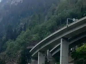 The A2 (the Gotthard Motorway) is a motorway in Switzerland. It forms Switzerland's main north–south axis from Basel to Chiasso, meandering with a slight drift toward the east. It lies on the Gotthard axis and crosses the Alps.