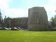 Chemistry was first recognized as a separate discipline at Oxford University with the construction of this laboratory, attached to the Oxford University Museum of Natural History, and opening in 1860.[2] The laboratory is a stone-built structure to the right of the museum, built in the Victorian Gothic style. The building was one of the first ever purpose-built chemical laboratories anywhere and was extended in 1878. A further major extension adding three wings was completed in 1957.[3] It is still a part of the Department of Chemistry. The ground floor is used as a training room by the Radcliffe Science Library.[4]