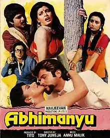 Abhimanyu is an Indian Hindi-language film directed by Tony Juneja and released in 1989. The movie stars Anil Kapoor, Kimi Katkar, Poonam Dhillon and Anita Raj. The film is the remake of Tamil blockbuster Sakalakala Vallavan, starring Kamal Haasan which was released in 1982. It was flop despite being satisfactory opening.