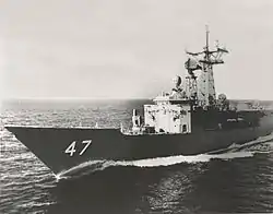 ![]() USS Farragut after destroying a pirate skiff in the Indian Ocean, an American boarding party is also depicted. | |||||||
