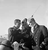 Corbett was awarded the Distinguished Service Order and Hall the Distinguished Service Cross for their "bravery, resolution and skill" in the battle.[18] All four Kriegsmarine commanders involved in the action were posthumously awarded the Knight's Cross of the Iron Cross, and Thorwest was promoted to the rank of fFregattenkapitän (Commander).[14][17]