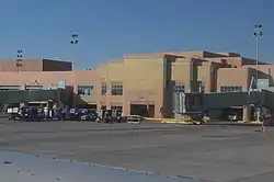 Albuquerque International Sunport (IATA: ABQ, ICAO: KABQ, FAA LID: ABQ) is the primary international airport serving the US State of New Mexico, the Albuquerque metropolitan area, as well as the larger Albuquerque–Santa Fe–Las Vegas CSA, handling 5,467,693 passengers in 2018.[3] It is located in Bernalillo County, New Mexico, between the Rio Grande river and the Sandia Mountains, east of Old Town Albuquerque and Barelas, 3 miles (5 km) southeast of downtown Albuquerque, south of the University of New Mexico, and directly to the west of Sandia National Laboratories and Kirtland Air Force Base.[2]