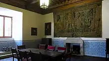 The Alcázar has housed the armory of the House of Trastámara since old times, and was the precedent of the collections of weapons that finally met in the Royal Armoury of Madrid.[5]