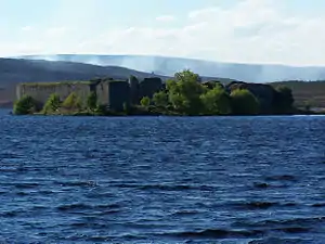 King Robert's reputation declined because of his backing Buchan's methods and so in November 1384, John, Earl of Carrick with the backing of the general council, took executive authority from his father with lawlessness in the north being a major issue.[20] The Lordship of Strathnairn had been administered by Buchan with the approval of the King, but now under Carrick's leadership, Sir David Lindsay was able to reassert his right to Strathnairn.[21] In April 1385, at the council, Buchan's brother David claimed that Buchan was holding Urquhart unlawfully, while Sir James Lindsay of Crawford reinstated his claim to the Lordship of Buchan and finally, the Earl of Moray demanded that some of Buchan's men be prosecuted for the killing of some of his men.[7][22] Despite these early attacks on his position, Buchan significantly strengthened his territorial position especially in the Great Glen where he retained Urquhart after his brother's death and then in the autumn of 1386 he gained the lands of Bona at the head of Loch Ness from the Earl of Moray and the adjoining lands in Abriachin from Sir Robert Chisholm.[23] Buchan's increased influence in Scottish affairs was again furthered when sometime before February 1387, he was appointed Justiciar North of the Forth[24] Carrick's guardianship of Scotland had not been a success and certainly failed to rein in Buchan and so late in 1388, King Robert's second son, Robert, Earl of Fife (Robert Stewart, Duke of Albany) became the effective ruler of the Kingdom.[25] Within days Fife removed Buchan from the Justiciarship and, it is assumed, the Royal Lieutenancy and the Sheriffdom of Inverness and later installed his own son, Murdoch as Justiciar North of the Forth.[7][26] Fife was very uncompromising towards Buchan,[27] who had been described as 'useless to the community' at a previous general council meeting.[7] Buchan had long deserted his wife and lived with Mairead inghean Eachainn with whom he had a number of children, including Alexander Stewart, Earl of Mar.[28] Marital law was the prerogative of the Church and so on 2 November 1389, Bishop Alexander Bur of Moray and Bishop Alexander Kylquhous of Ross, ordered his return to his wife, Euphemia.[29] Buchan agreed to this, but didn't live up to his promise and so Fife encouraged Euphemia of Ross during her divorce proceedings against Buchan and in 1392 Euphemia was successful in her appeal to the Avignon papal court and his marriage was annulled.[30] Following the annulment, Buchan lost all claim to Euphemia's lands which returned to her and to her son Alexander Leslie, Earl of Ross who was also contracted to marry Fife's daughter.[31]