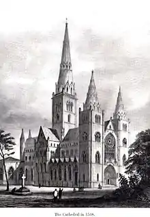 There was no dominant potentate in Moray during the 12th and 13th centuries and the bishops ruled their territories with a great deal of independence, but this ended when King Robert I of Scotland elevated his nephew Thomas Randolph to the Earldom of Moray sometime between 12 April and 29 October 1312.[14][15] The Randolph family did not hold the Earldom for long and it reverted to the crown on the death of Thomas's son John, in 1346, and lay vacant for the next 26 years. In 1365 bishop Bur persuaded David II that his lands in Badenoch and Strathspey should be governed as if in regality.[4] To emphasise this, Bur, when he entered into the protection agreement with Alexander in 1370, ensured that the de facto Lord of Badenoch would have no hold on him, nor on his lands and people.[4] A few months later in March 1371, on his father's accession to the throne, Alexander was officially made Lord of Badenoch.[16] Robert II's charter gave Alexander the lands of Badenoch seemingly in regality with, presumably, authority over the church lands however, bishop Bur possibly protested at this, as the details of the grant of Badenoch contained in the Register of the Great Seal has no reference to regality.[4] Alexander was therefore to hold the Badenoch lands with no greater authority than John Comyn had a century before. The bishop continued to come under pressure from Alexander either directly or from his caterans possibly acting independently. Boardman explains that both the bishops of Moray and Aberdeen were in dispute with Alexander regarding the strain that his cateran followers were putting on church lands and tenants.[17] Boardman also theorises that it was this occupation of church lands, virtually rendering them worthless in terms of income, that may have been the reason for Bur 'voluntarily' giving up his rights to estates such as Rothiemurchas, on 20 April 1382.[18][19] Complicating matters was the fact that neither of the bishops could appeal to the 'legitimate secular authority' as that authority was Alexander himself in his positions of Lord of Badenoch and Royal Lieutenant and was the reason why they appealed directly to the King.[17][19]