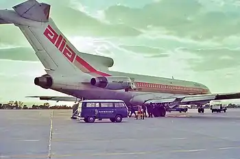 Alia Royal Jordanian Flight 600 was a scheduled passenger flight from Queen Alia International Airport, Jordan to Seeb International Airport, Muscat, Oman, via Doha International Airport in Qatar. On 13 March 1979 it was being operated by a Boeing 727-2D3 jet airliner registered in Jordan as JY-ADU when, while carrying out a missed approach to Runway 34 at Doha at night, it flew into a thunderstorm, causing the aircraft to drop 750 feet (230 m) into the ground.[1] Sixty-four people were on board; of the 15 crew four died and two were seriously injured and 41 passengers were killed and six seriously injured; the aircraft was destroyed.[1]