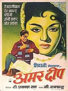 Amardeep (transl. The Eternal Lamp) is a 1958 Indian Hindi-language romantic drama film directed by T. Prakash Rao. The film stars Dev Anand, Vyjayanthimala, Padmini, Ragini, Johnny Walker, Pran and Om Prakash. The film's music is by C. Ramchandra. It is a remake of 1956 Tamil movie Amara Deepam which itself was a remake of the 1942 English-language film Random Harvest which had earlier been adapted in Bengali as Harano Sur(1957).[1]