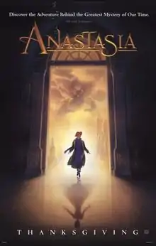 A limited release of Anastasia at the Ziegfeld Theatre in New York City on the weekend of November 14, 1997, grossed $120,541.[50] The following week, the wide release of Anastasia in the United States made $14.1 million (for an average of about $5,692 from 2,478 theaters), which placed it as the #2 film (behind Mortal Kombat: Annihilation) for the weekend of November 21–23, 1997. By the end of its theatrical run, Anastasia had grossed $58.4 million in the North American box office and $81.4 million internationally.[2] The worldwide gross totaled up to about $139.8 million, making it Don Bluth's highest-grossing film to date and beating out his next highest-grossing film, An American Tail, by about $55 million.[51] This was Don Bluth's first financially successful film since All Dogs Go to Heaven.