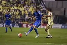 On 18 June 2015, Gignac signed with Mexican club Tigres UANL, ending rumours of alleged interest from several European teams.[74] Upon signing, he said his ambition to join the club was to win the domestic league and help his side reach the final of Copa Libertadores.[75] Gignac made his official debut with Tigres on 15 July in the away game of semi-finals of the 2015 Copa Libertadores against Brazilian side Internacional at the Estádio Beira-Rio, a 2–1 defeat. In the second leg, he scored his first goal to open a 3–1 victory, taking his team into the finals against River Plate of Argentina.[76]