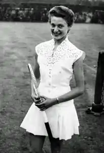 Angela Buxton (16 August 1934 – 14 August 2020)[2] was a British tennis player. She won the women's doubles title at both the French Championships and Wimbledon in 1956 with her playing partner Althea Gibson.