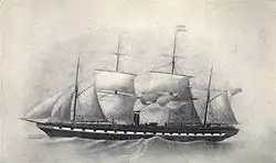 In this guise she undertook one more trip to New York under the flag of Gibbs, Bright & Co., before they sold her to Antony Gibbs & Sons. Gibbs, Bright & Co. remained the ship's agents and operators, and under instruction employed Great Britain to exploit a temporary demand for passenger service to the Australian gold fields following the discovery of gold in Australia in 1851.[8] In 1852, Great Britain made her first voyage to Melbourne, carrying 630 emigrants. She excited great interest there, with 4,000 people paying a shilling each to inspect her. On her return to Liverpool, she was given a third refit: