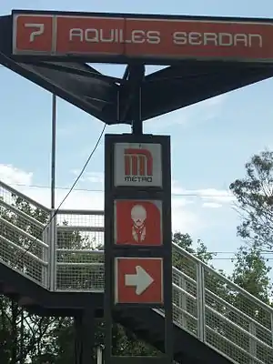 Metro Aquiles Serdán (Spanish: Estación Aquiles Serdán) is a station along Line 7 of the Mexico City Metro.[2][3] It is located in the Colonia La Preciosa neighborhood of the Azcapotzalco borough of northwestern Mexico City.[2]