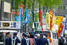 Evidently, opinions range from one extreme of pacifism, to the other extreme of nationalism and complete remilitarization.[27] The majority of Japanese citizens approve the spirit of Article 9 and consider it personally important.[28][29] But since the 1990s, there has been a shift away from a stance that would tolerate no alteration of the article to allowing a revision that would resolve the discord between the JSDF and Article 9.[30][31] Additionally, quite a few citizens consider that Japan should allow itself to commit the Japan Self-Defense Forces to collective defense efforts, like those agreed to on the UN Security Council in the Gulf War, for instance.[32] Japan's ability to "engage in collective defense" has been argued.[33] The involvement of Japan in the Gulf War of 1990, or lack of involvement, has provoked significant criticism. Despite U.S. pressure on Japan to assist America in Iraq, Japan limited their involvement in the war to financial contribution primarily because of domestic opposition to the deployment of troops.[34] As a result of the painfully ardent disapproval from the U.S. during the Gulf War, Japan was quick to act after the September 11 attacks in 2001. It was clear that "the September 11 attacks led to increased U.S. demands for Japanese security cooperation".[35] On October 29, 2001, the Anti-Terrorism Special Measures Law was passed, which "further broadened the definition of Japan's self-defense".[36] The law allowed Japan to support the U.S. military on foreign territory. This law provoked "citizen groups [to] file lawsuits against the Japanese government in order to stop the dispatch of JSDF troops to Iraq and to confirm the unconstitutionality of such a dispatch",[37] though the troops sent to Iraq were not sent for combat but for humanitarian aid. Japan has actively built U.S.-Japan relations precisely because of Article 9 and Japan's inability to engage in an offensive war. It has been debated that, "when [Koizumi] declared support for the U.S.-led war on Iraq in March 2003, and when he sent Japanese forces to aid the occupation in January 2004, it was not Iraq that was in the Japanese sights so much as North Korea".[38] Japan's unstable relations with North Korea, as well as other neighboring Asian countries has forced Japan to batter and bend Article 9 to "permit an increasingly expansive interpretation" of the constitution in the hopes of guaranteeing U.S. support in these relations.[39]