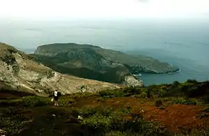 Ascension Island has a subtropical semi-arid climate. Temperatures range from 10 to 32° C. Mean annual rainfall is 709 mm. Rain showers occur year-round, with slightly higher rainfall during the summer months (January to April).[1] Trade winds are generally from the southeast. As moisture-bearing winds ascend Green Mountain, they cool and create orographic precipitation as both mist and rain.[3]