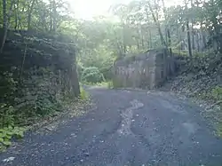 These inclined plane railbeds were used for the transportation of anthracite coal. The railroads were in use until 1948.[2]