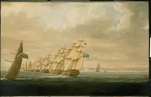 ![]() Nelson's Blockading Squadron at Cadiz 1797 by T. Buttersworth, oil on canvas. | |||||||
