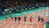 The men's 110 metre hurdles at the 2000 Summer Olympics as part of the athletics programme were held at Stadium Australia on Sunday 24 September and Monday 25 September 2000.[1] Forty-four athletes from 31 nations competed.[2] The maximum number of athletes per nation had been set at 3 since the 1930 Olympic Congress. The event was won by Anier Garcia of Cuba, the nation's first championship in the event and first medal in the event since 1980. Mark Crear's bronze made him the 10th man to win a second medal in the event.