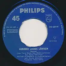 "Aurinko laskee länteen" ("The sun sets in the west") was the Finnish entry in the Eurovision Song Contest 1965, performed in Finnish by Viktor Klimenko.