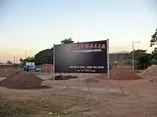 The director planned to begin filming in March 2007.[18] However, principal photography began on 30 April 2007 in Sydney,[19] and Kidman found out that she was pregnant. She instantly withdrew from her next film, The Reader.[20] Afterwards, the production moved to Bowen on 14 May.[14] Filming in Kununurra was a gruelling experience for the cast and crew with temperatures soaring to 43 °C (109 °F) which, one day, caused Kidman to faint while on a horse.[20] In addition, she worked 14- and 15-hour days while dealing with morning sickness.[20] While shooting in a remote region of Western Australia, the shoot had to be rescheduled when the Faraway Downs set, the homestead central to the film's story, was reduced to mud from torrential rain – the first in 50 years.[21] The cast and crew went back to Sydney to shoot interior scenes until the expensive set dried out.[15] In addition, at one point, the entire country's horses were in lock down over equine flu.[4] Scenes using Darwin harbour were shot in July 2007, with parts of Stokes Hill Wharf blocked to the public and mini buses used to ferry tourists past the film set.[22] Filming lasted five months, wrapping up at Fox Studios, Sydney, on 19 December 2007.[23] In late April, Luhrmann titled his project Australia. Two other titles that he considered for the film had been Great Southern Land and Faraway Downs.[24] On 11 August 2008, eight months after filming wrapped, several members of the cast and crew were back at Fox Studios, Sydney, to film pick up shots.[25]