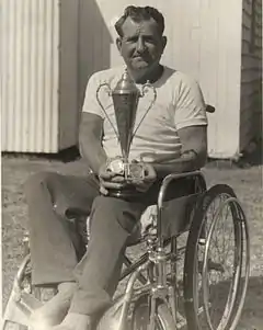The Australian team captain for the 'Wheelchair Olympics', as they were popularly known at the time, was Dennis Kay.[7] Kay, competing at his first Paralympics took part in the discus, shot put, javelin and weightlifting.[1] Originally from Yorkshire in the United Kingdom, there was an ongoing joke within in the team about the fact they had a former 'Pommie' as their captain.[7]