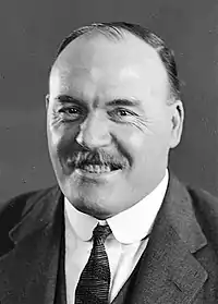 On Storey's death in October 1921, James Dooley became leader of the party and premier. His government was defeated on the floor of the House on 13 December 1921, but new Premier George Fuller lost a vote within seven hours of his appointment, and Dooley regained power. He lost the 1922 election to Fuller in a highly sectarian election campaign.[5] As the result of a dispute with a party executive, dominated by the Australian Workers' Union, Dooley was expelled from the party in February 1923 and replaced by Greg McGirr as leader, but the Federal Executive intervened and appointed Bill Dunn as an interim leader until Jack Lang was elected by the caucus,[6] with the support of more radical unions, most prominently Albert Willis and his Australian Coal and Shale Employees' Federation.[4]