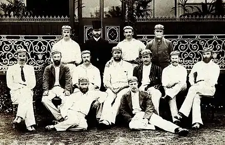 This was the inaugural Old Trafford Test and, as Chris Harte described it, "the first time that a match of such importance had been staged outside of London".[14] Selection of an England home Test team in the 19th century was the privilege of the host club and Lancashire selected five local players in their squad of twelve, although Jack Crossland missed out and was made twelfth man. Barlow, Hornby, Pilling and Steel all played as it was believed their presence would boost the gate receipts.[78]