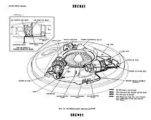 There was some debate about the concept within the USAF, as many groups were attempting to gain funding for their own pet projects, like nuclear powered bombers.[11] In a repeat of the earlier Toronto Star release, in 1955 an extensive article appeared in Look magazine that, among other claims, speculated that current UFO sightings were Soviet-built saucers.[lower-alpha 2] The article went on to describe such an aircraft with diagrams that were clearly influenced by the Avro design.[12]