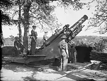 One disadvantage of the dismantling system was an inability to fire directly from the travelling carriage the way the BL 8 inch Howitzer could. Thirty-six hours were normally required to dismount a gun from its travelling configuration and set it up for firing.[14] However, the stability of the siege mounting made it "the most accurate of heavy howitzers".[15]